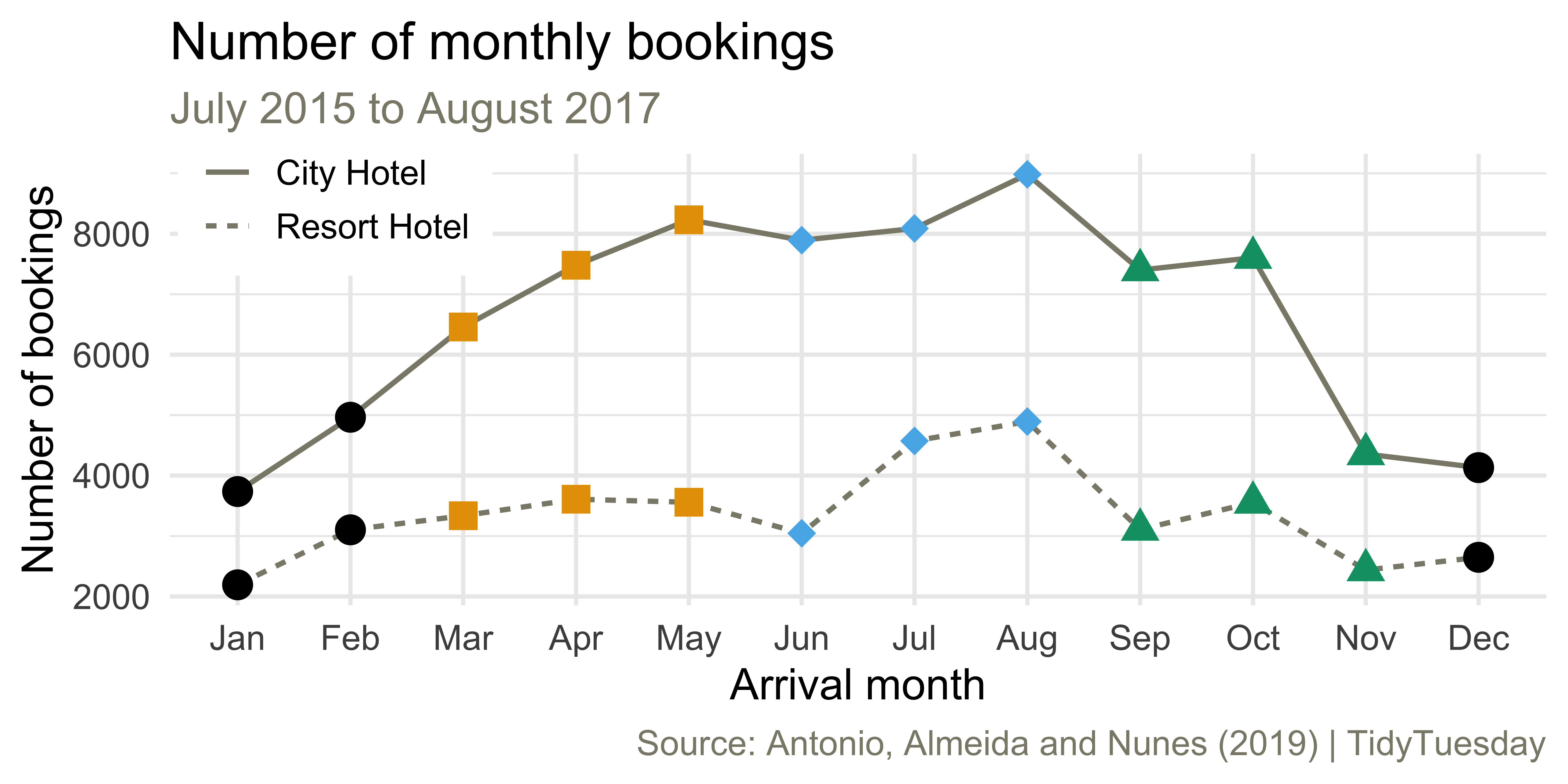 caption = "Source: Antonio, Almeida and Nunes (2019) | TidyTuesday"