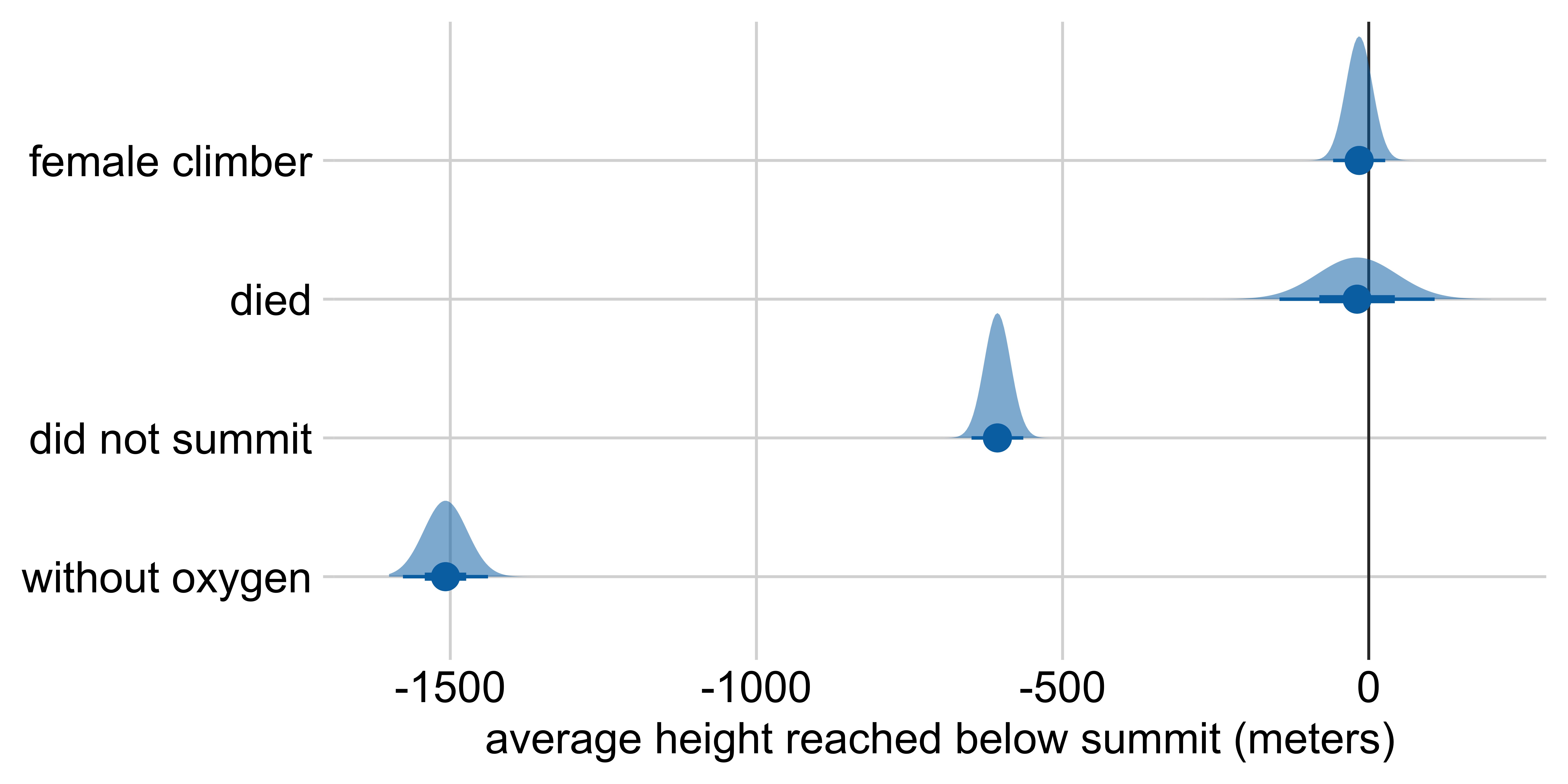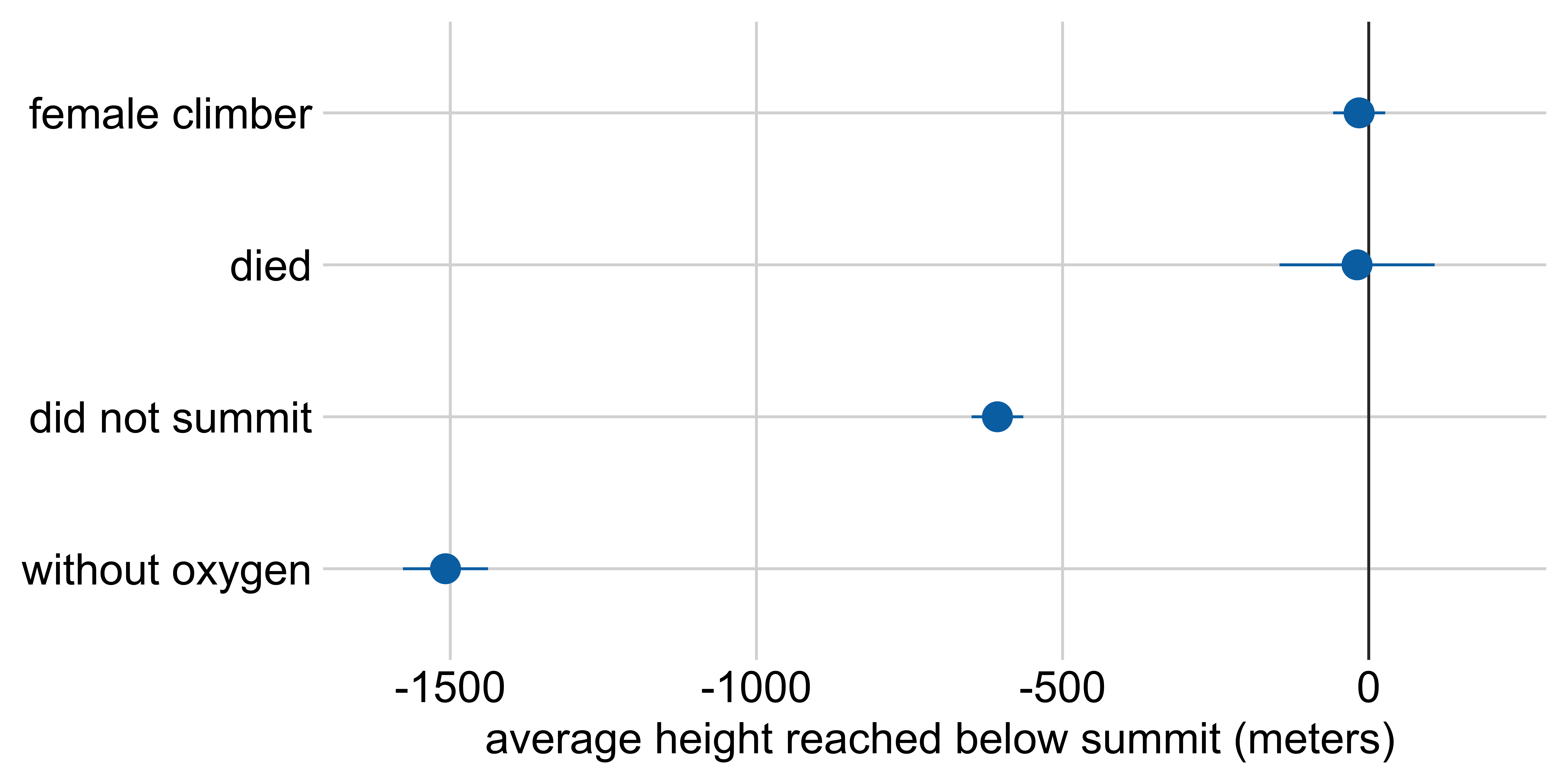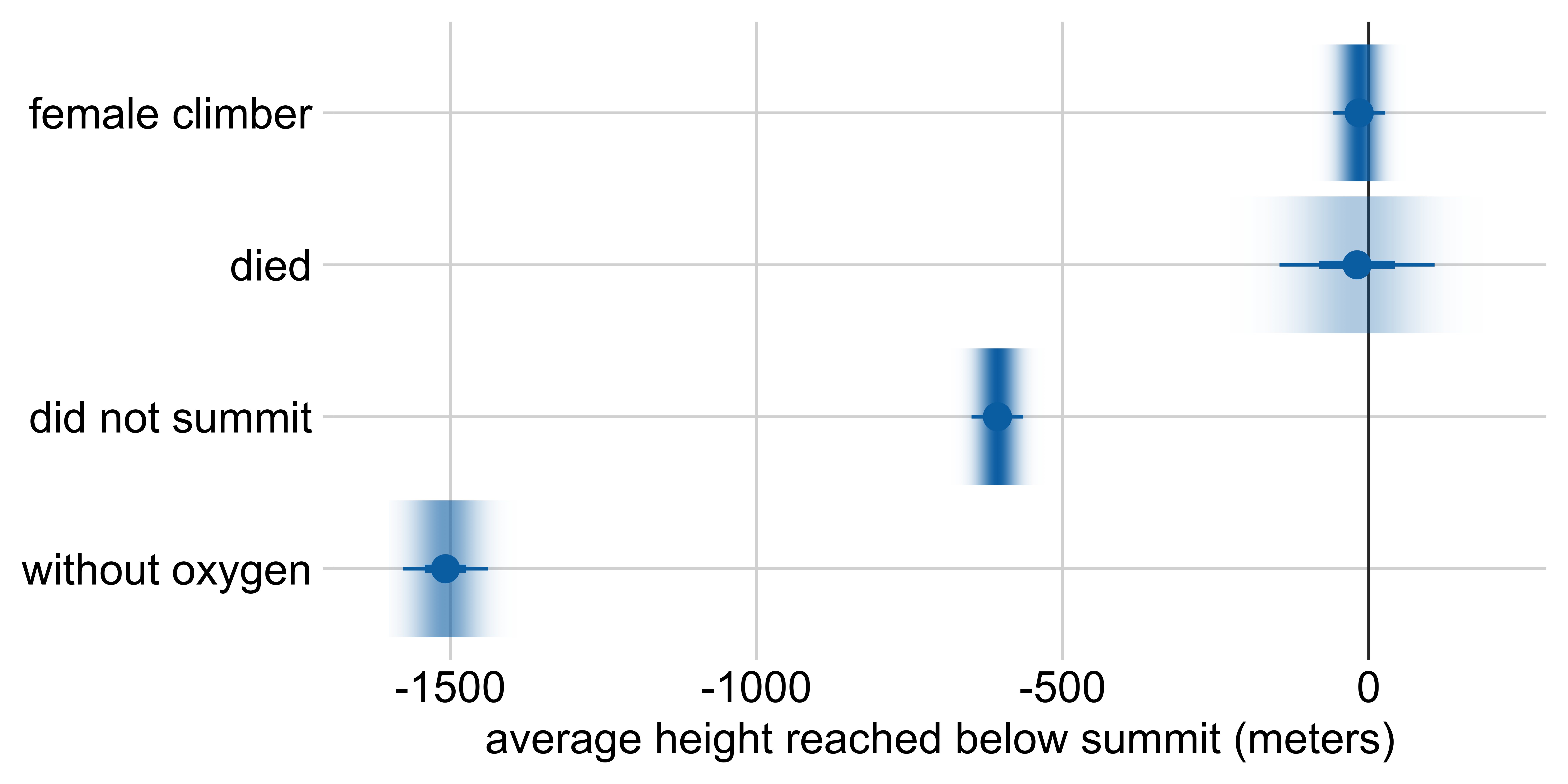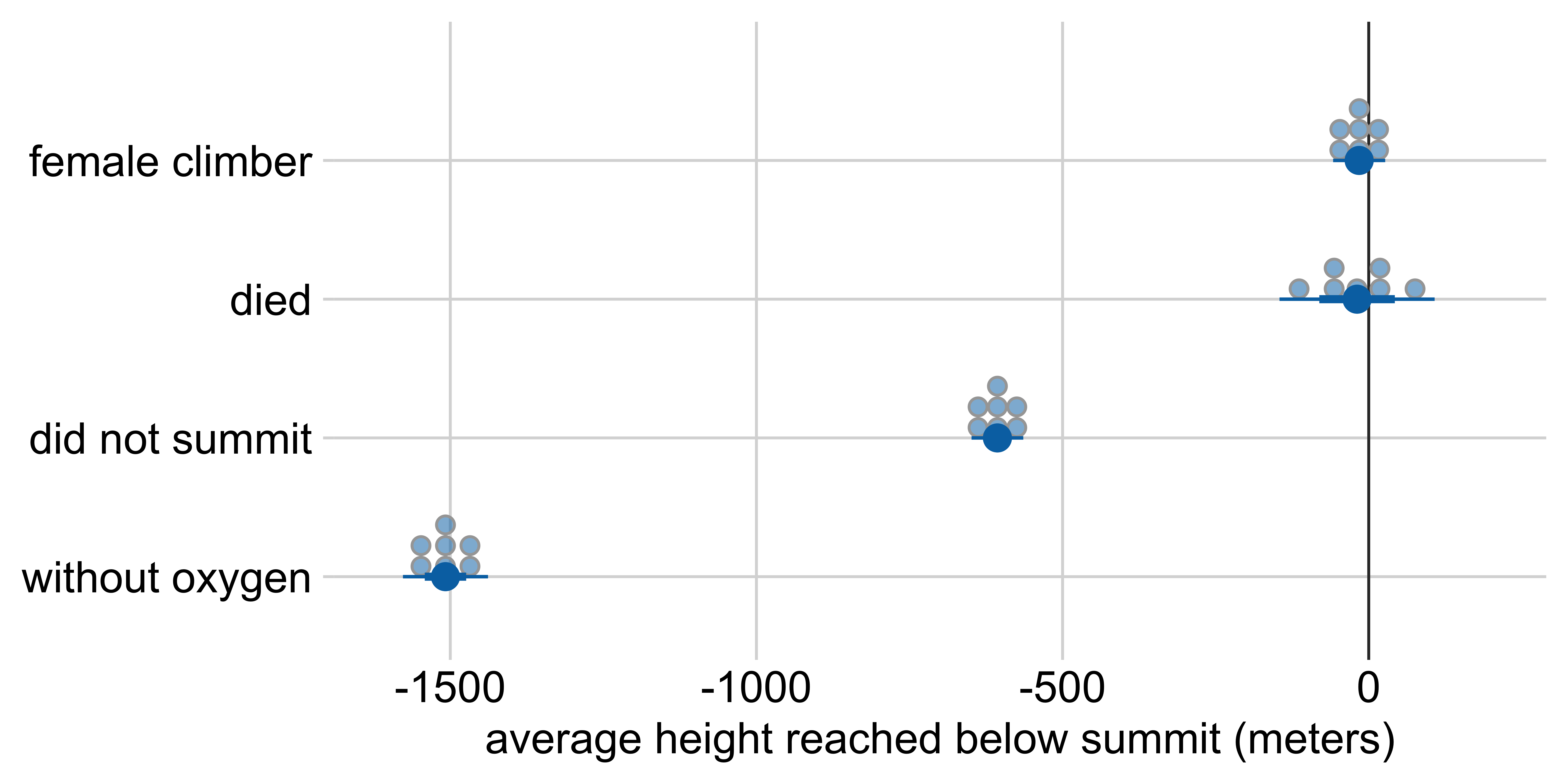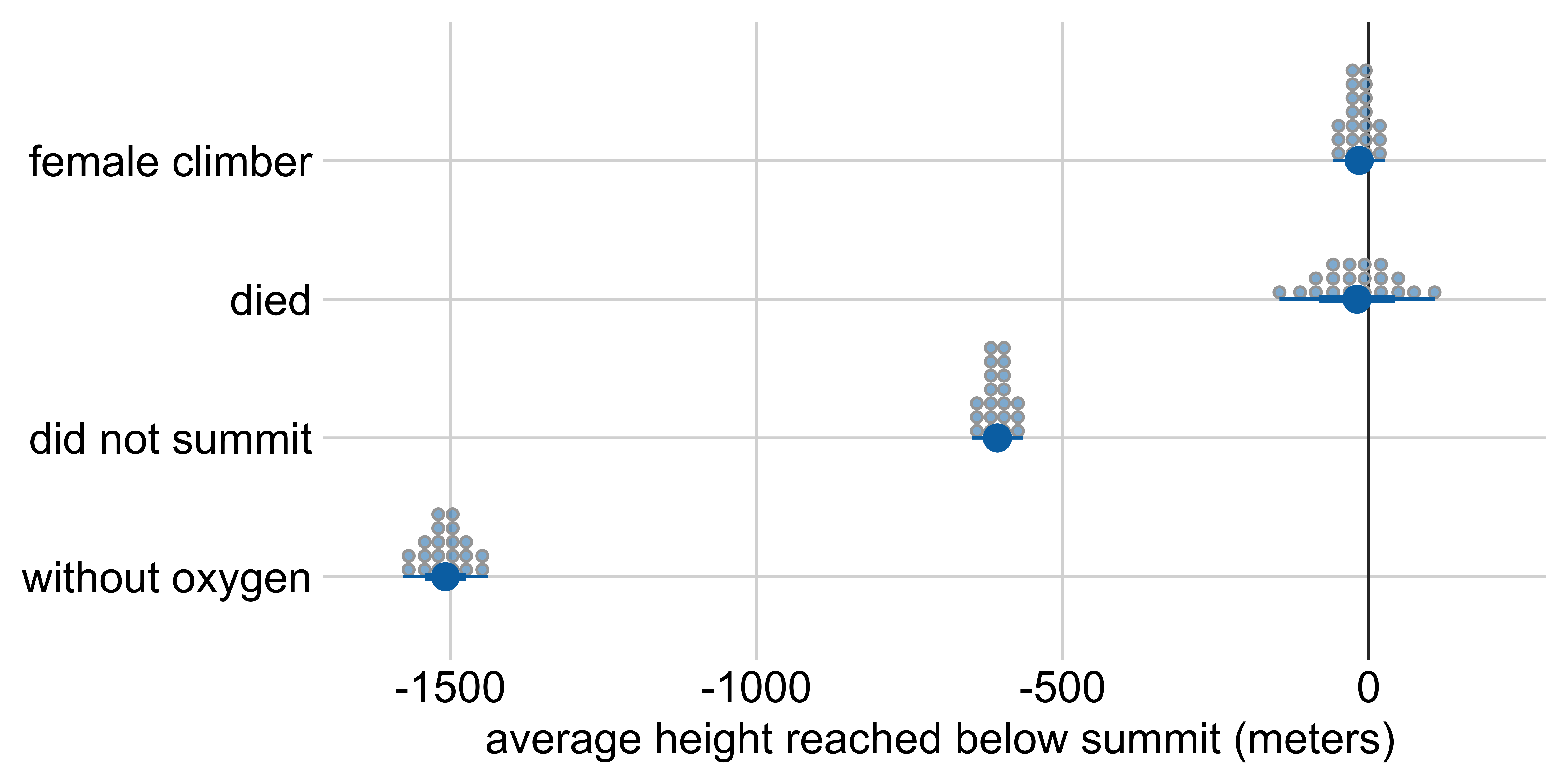 Average height reached relative to: a male climber who climbed with oxygen, summited, and survived