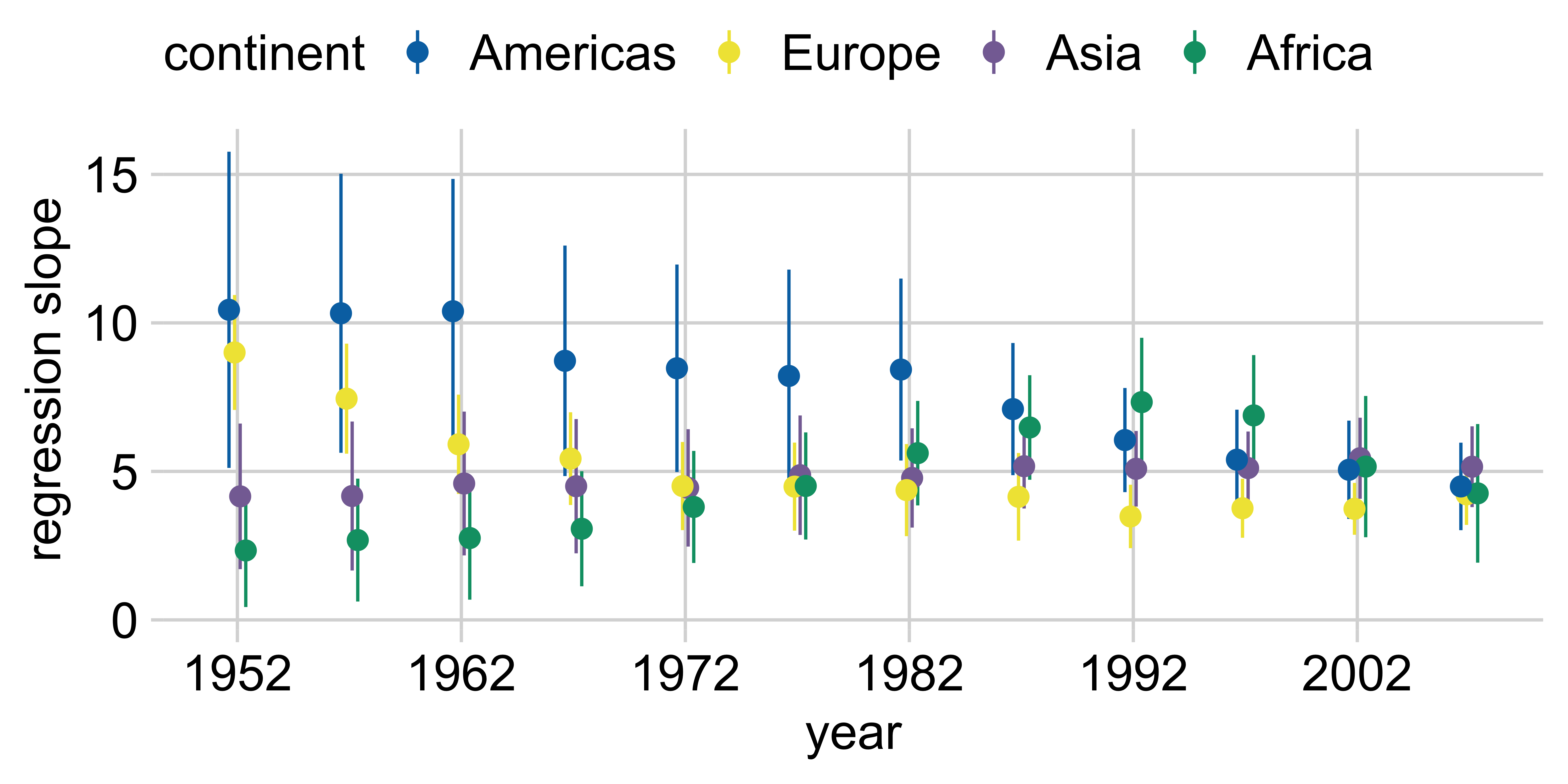 # load packagesif(!require(pacman))install.packages("pacman")pacman::p_load(countdown, tidymodels, tidyverse, colorspace, cowplot, waffle, distributional, emmeans, gapminder, ggdist, margins, ggtext, ggpubr)# for github packages (make sure to use #| output: false)pacman::p_load_gh("wilkelab/ungeviz")# set theme for ggplot2ggplot2::theme_set(ggplot2::theme_minimal(base_size =14, base_family ="Myriad Pro"))# set width of code outputoptions(width =65)# set figure parameters for knitrknitr::opts_chunk$set(fig.width =7, # 7" widthfig.asp =0.618, # the golden ratiofig.retina =3, # dpi multiplier for displaying HTML output on retinafig.align ="center", # center align figuresdpi =300# higher dpi, sharper image)